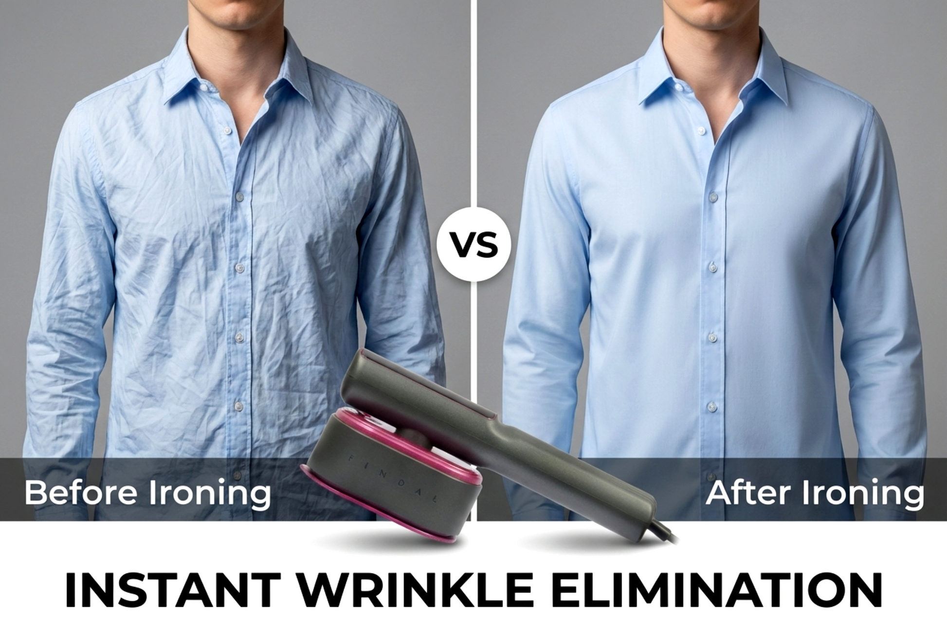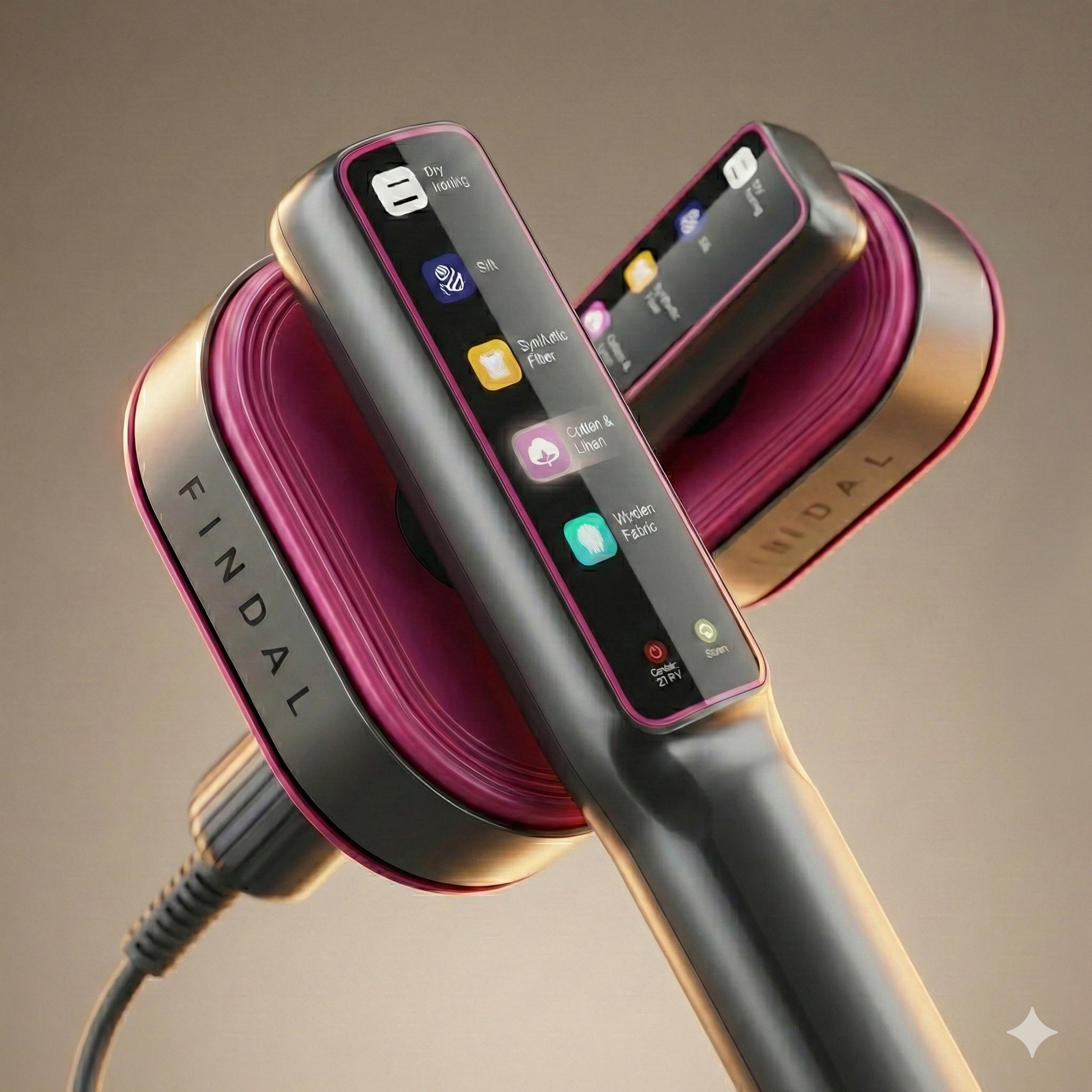 - Iron & Steamer in One Compact Device - Designed to function as both a handheld iron and garment steamer, Findal smooths wrinkles efficiently whether garments are laid flat or steamed vertically on a hanger.