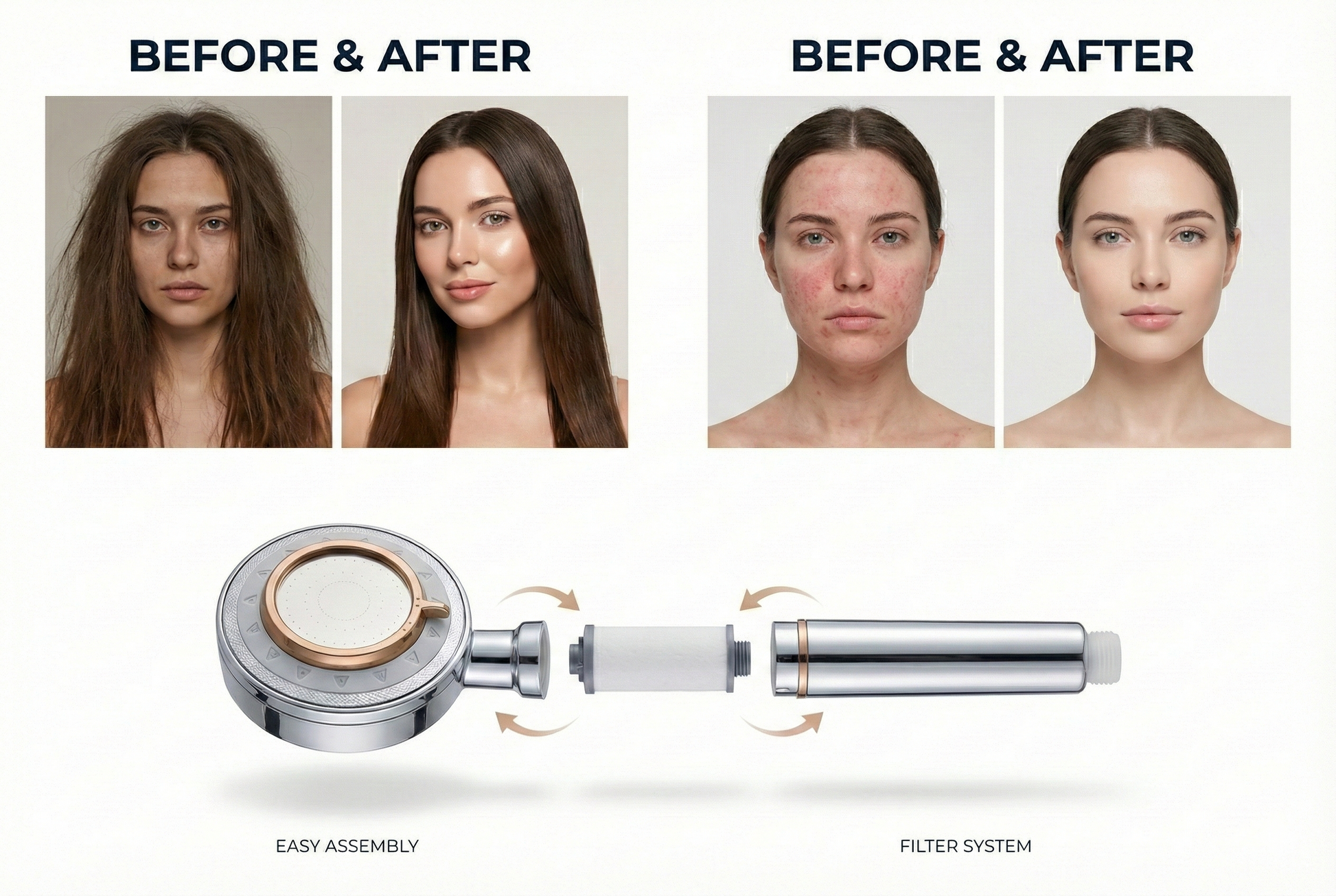 - Designed for GCC Hard Water — Engineered specifically for the high-chlorine, high-mineral water conditions across the Gulf region. Standard showerheads do not filter this out. This one does.